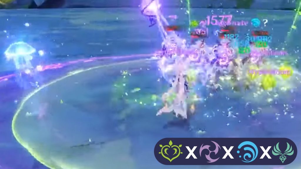 คอมโบ Dendro(ธาตุไม้) × Electro(ธาตุไฟฟ้า) × Hydro(ธาตุน้ำ) × Anemo(ธาตุลม)