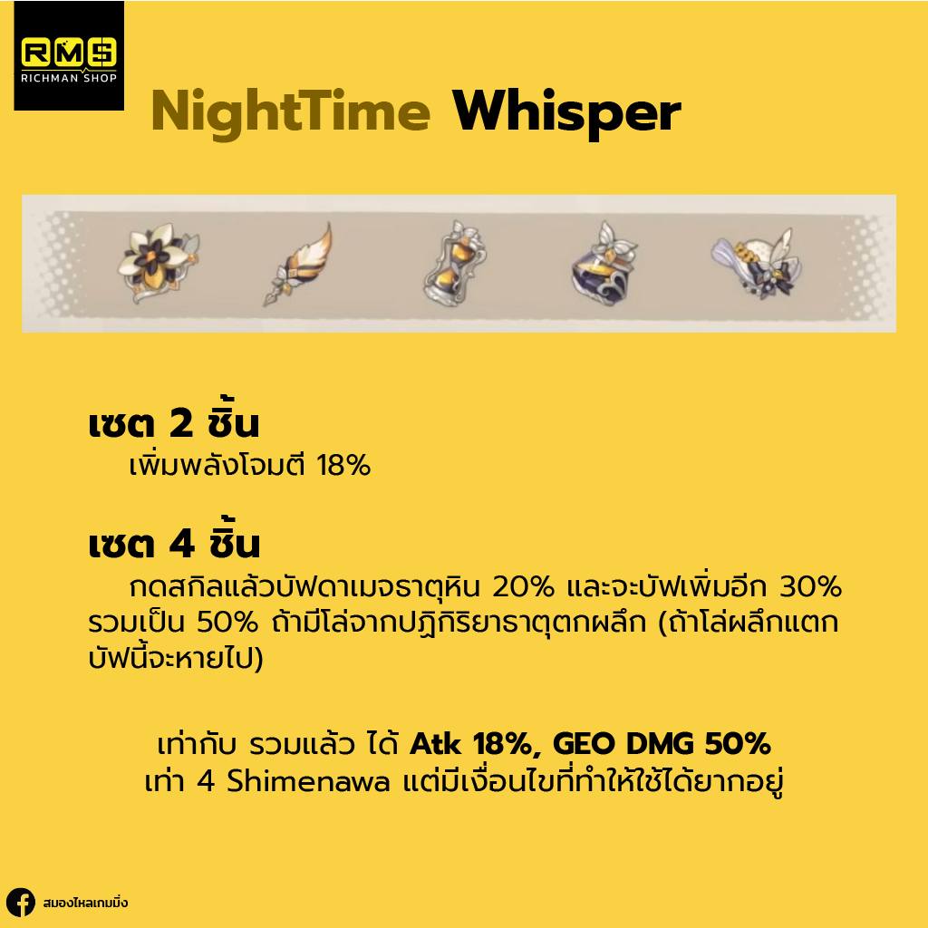 เซตหิน NightTime โอ้พระสงฆ์ Atk 18% DMG 50% แรงในระดับท็อปๆเลยทีเดียว แต่มากับเงื่อนไข คือต้องมีโล่ผลึก