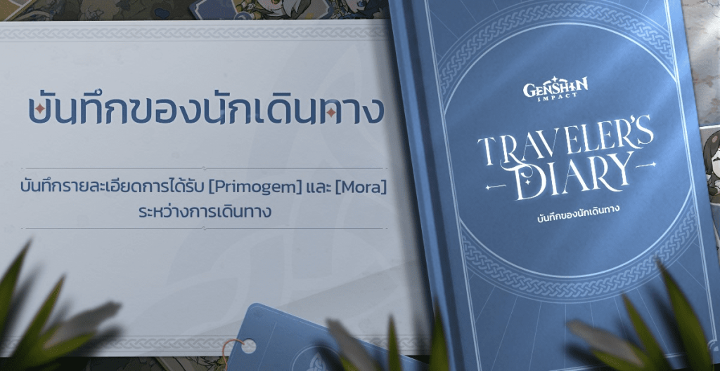 โดยคู่มือของนักเดินทางจะมีทั้งหมด 9 บท ซึ่งในแต่ละบทจะให้ Primogems แตกต่างกันไป เลเวล 1 จะให้อยู่ที่ 50 Primogems เพิ่มมาอีกหน่อยก็จะเป็น 100 Primogems และในเฟสสุดท้ายจะให้อยู่ที่ 150 Primogems ต่อการสำเร็จคู่มือนักเดินทาง
