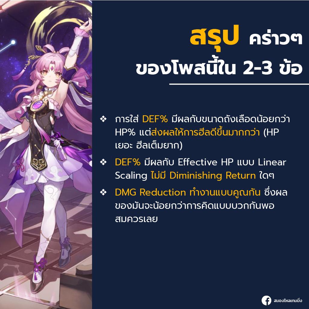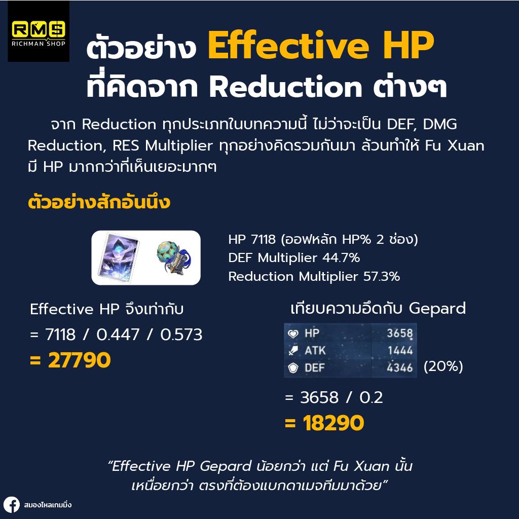2 HP / 2 Reduction / 2 SPD เป็นเรื่องราวที่เถียงกันไม่มีวันจบของ Fu Xuan แต่หลักๆ แล้ว คือการสอนวิธีการคำนวน Effective HP Max ของตัวละคร หรือก็คือดาเมจที่ตัวละครสามารถรับได้ เพื่อใช้ในการเปรียบเทียบความอึดถึกทนของตัวละครนั่นเอง