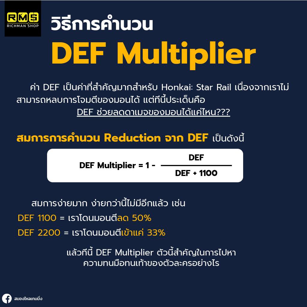 วีธีคำนวน DEF Multiplier ค่า DEF เป็นค่าที่สำคัญมากๆ สำหรับเกม Honkai star rail สมการการคำนวน Reduction จาก DEF เป็นสมการง่ายๆ ใครๆก็สามารถเอาสมการนี้ไปคำนวนกันได้
