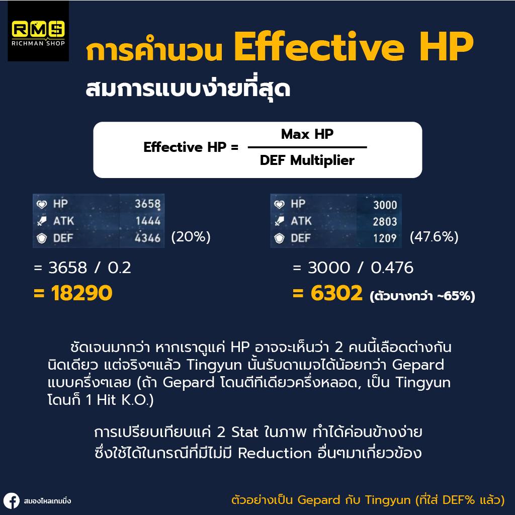 วีธีคำนวน Effective HP ง่ายๆ คือการเอา HP หารกับ DEF จะได้ค่าเท่ากับตามในภาพที่คุณกำลังเห็นอยู่ตอนนี้เลย