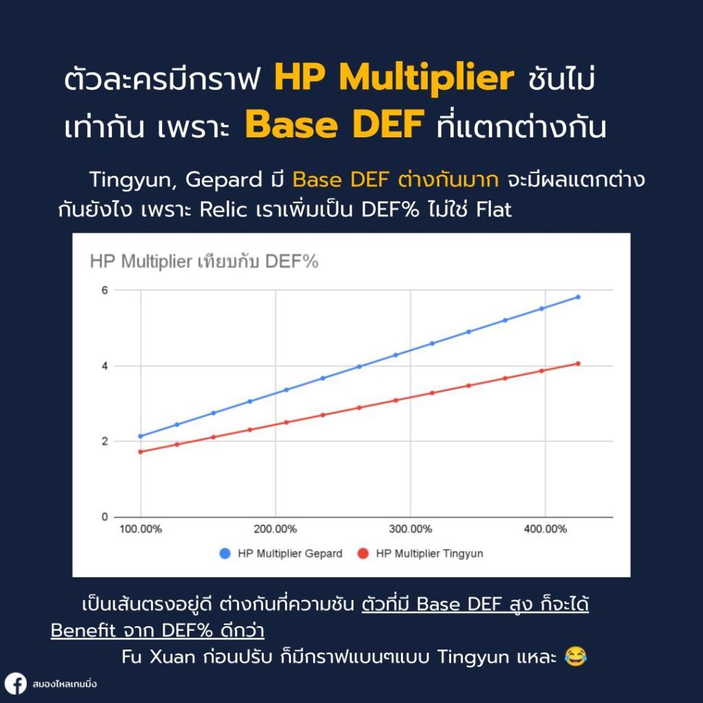 กราฟแสดงผล HP Multiplier ที่ชันไม่เท่ากัน เพราะ Base DEF ที่แตกตางกัน