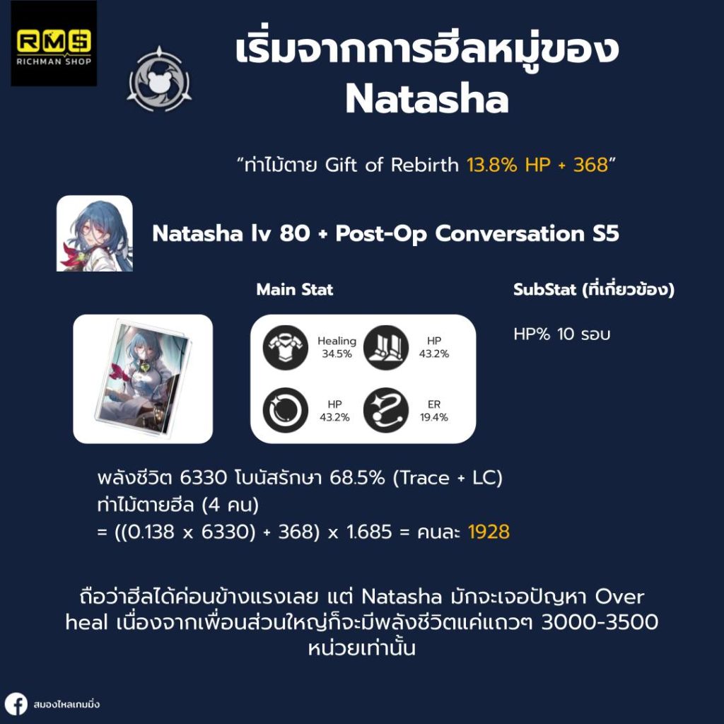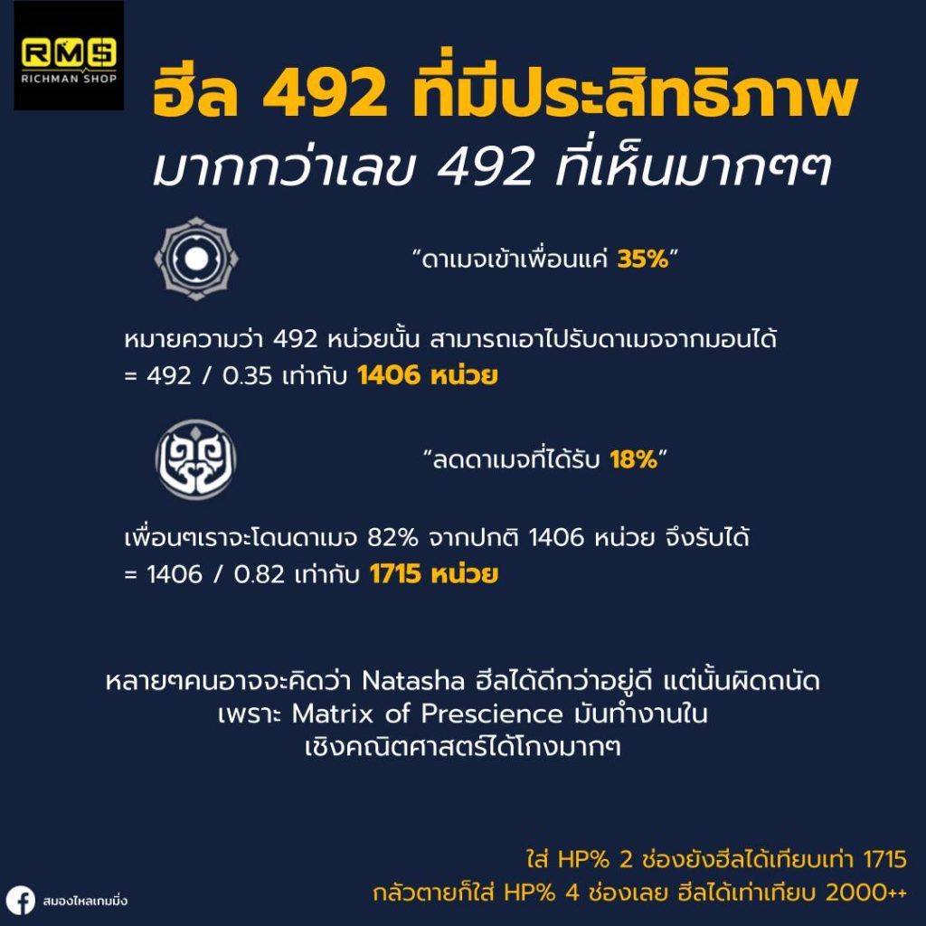 ((ค่าพลังชีวิต x กับ % HP)+368) x 1.685 = 1,928 โดยปัญหาที่เจอกัน คือ Narasha จะปัญหาคือ Over heal
