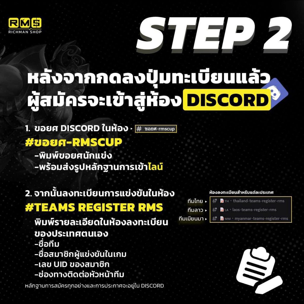 -ให้ตัวแทนทีมพิมพ์ชื่อประเทศ, ชื่อทีม, สมาชิก, UID, โลโก้ทีมและช่องทางติดต่อ