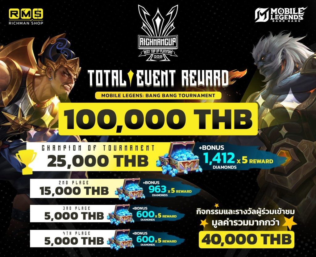 Richman Cup X Mlbb Tournament ศึกดวลป้อม เปิดรับสมัคร 5-26 ม.ค.2569 รางวัลรวมกว่า 1 แสนบาท รอคุณอยู่