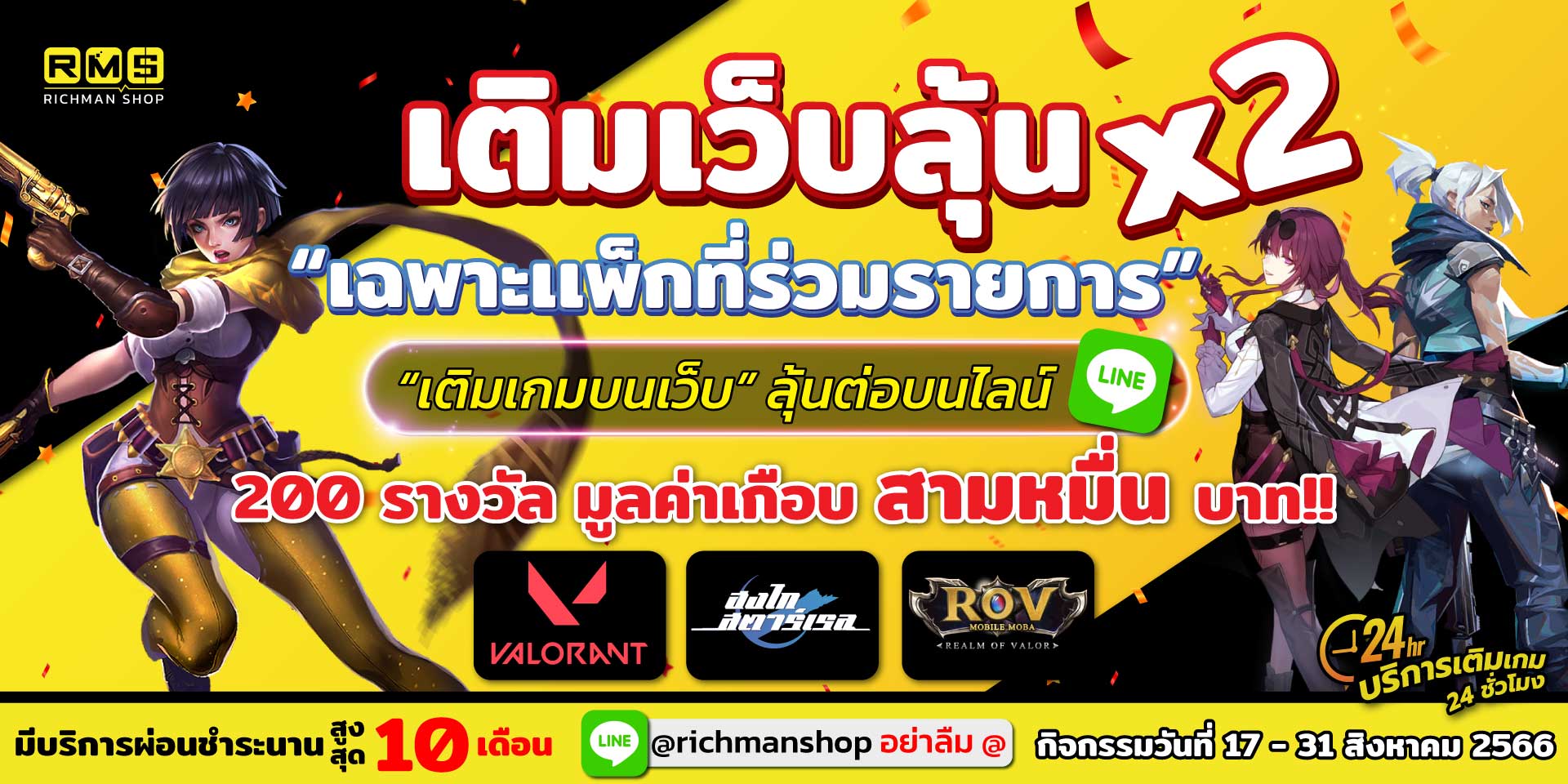 กิจกรรมแจกยับๆ “เติมเว็บเสร็จลุ้นต่อที่ LINE”