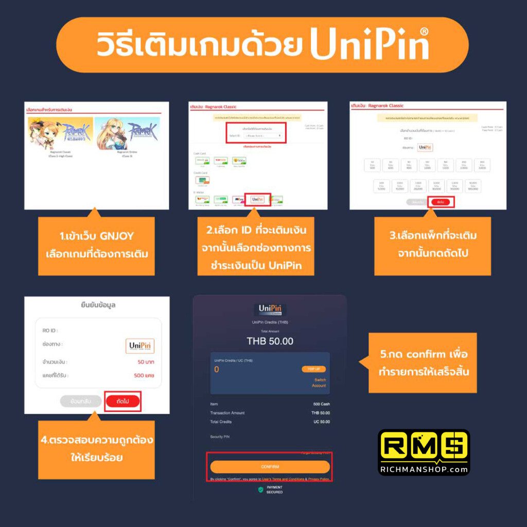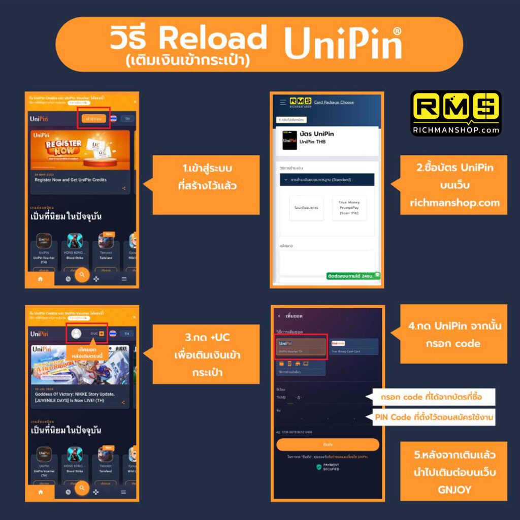 ระบบเติมใหม่มาแล้วกับ Unipin ที่ให้คุณมากกว่าคำว่า Cash เพราะมีทั้งของแถม Cash แถม แต่หลายคนอาจจะยังไม่รู้ว่ามันสมัครและเติมยังไง วันนี้ Richman shop จะมาจับมือคุณสมัคร และเติมกับเราแบบง่าย และเป็นทุกขั้นตอน!